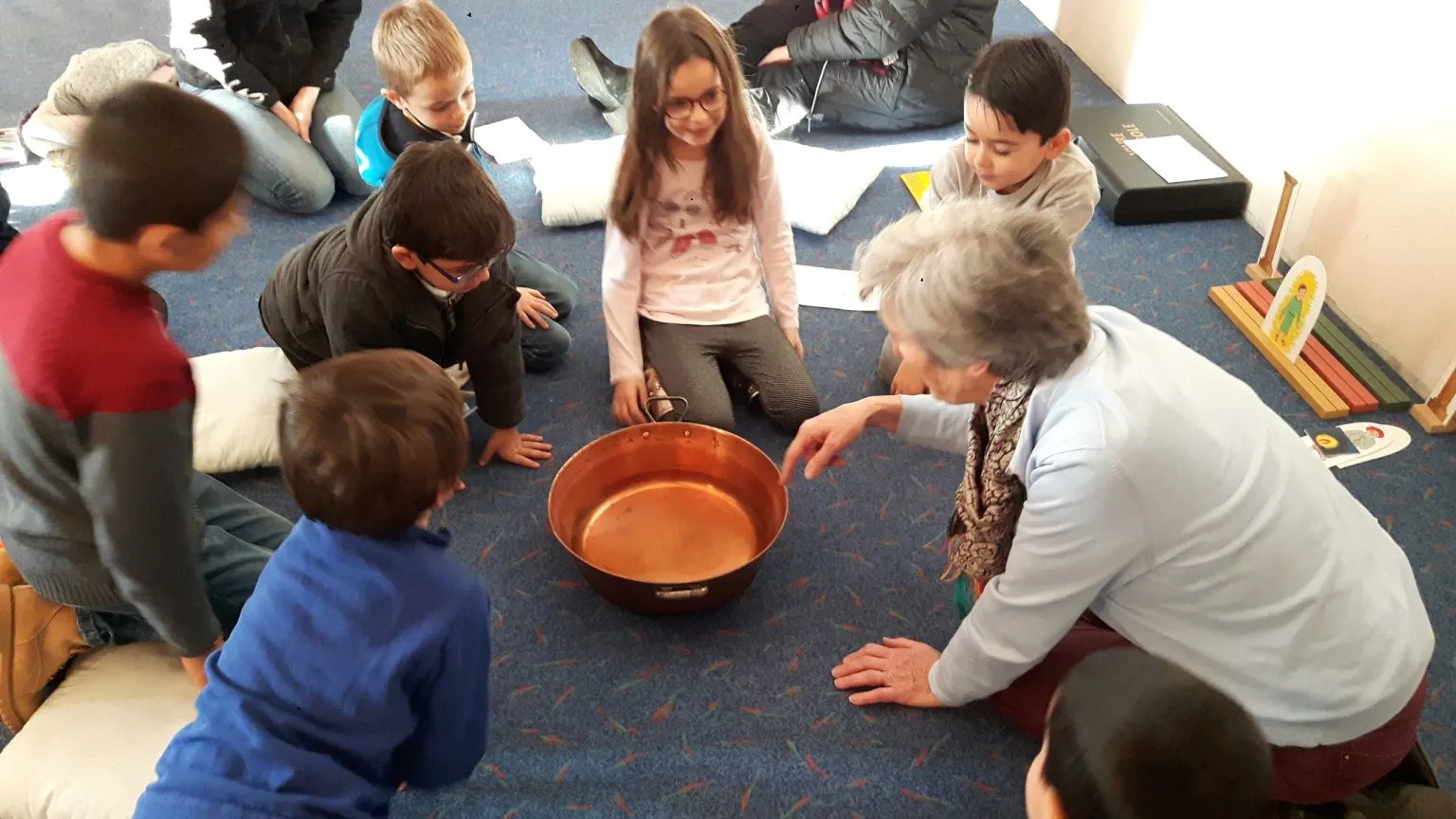 Dès l’âge de 4 ans, et jusqu’à 6 ans, les enfants sont invités à découvrir des histoires de Jésus ou de personnages de la Bible, ce qu’on fait à la messe le dimanche, quel est le sens de Noël, comment parler à Dieu sans le voir et à comprendre que cela peut avoir un rapport avec notre vie d’aujourd’hui.