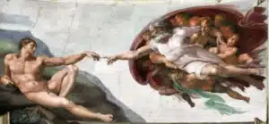 Autre temps, autre lieu : la chapelle sixtine et son plafond. La scène de la création où l’on voit deux doigts celui d’Adam et celui de Dieu. Une autre image de la limite et peut être aussi de la tentation. Peut-on toucher le doigt de Dieu qui est si proche ? Ou bien Dieu nous montre le chemin , sommes nous prêt à la suivre ?