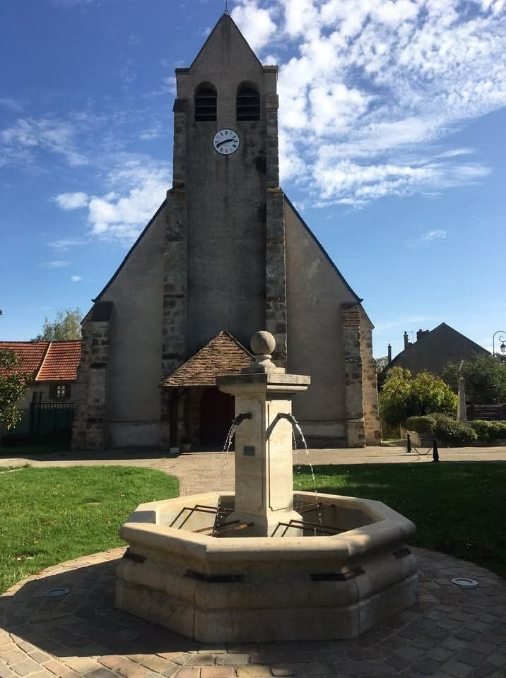 Elle existe , sans doute en bois depuis le 11ème. L’église actuelle, à nef unique, est construite en plusieurs étapes ; le chœur étant la partie la plus ancienne, vraisemblablement du 13eme , style local voûté en cul de four puis agrandit fin du 15ème. L’autel et le retable datent du 18ème siècle, les boiseries du chœur en gris et or viennent peut-être du grand séminaire de Versailles. L’autel peint en faux marbre est orné d’un tabernacle imposant, peint lui aussi en gris et doré.